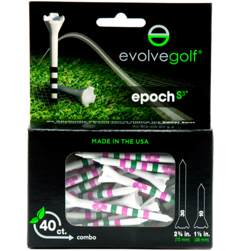 Epoch S3 Golf Tees (40 Pack) - Pink & Green Bands/Azalea. Epoch S3 Golf Tees (40 Pack) - Pink & Green Bands/Azalea 40 Count Combo Pack Includes: (30) 2.75" tees and (10) 1.5" tees... - Epoch S3 Golf Tees (40 Pack) - Pink & Green Bands/Azalea.
