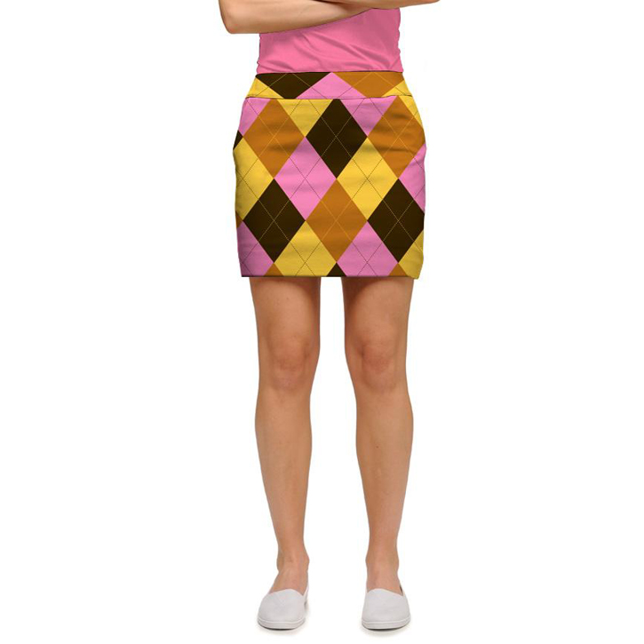 Loudmouth Golf Skort - Blue & Gold Splash. Loudmouth Golf Skorts - Blue & Gold Splash Loudmouth Golf skorts are fun! A cotton-spandex blend, LM skorts are cute, stylish and flattering. Perfect for a round of golf or a day with the girls. 97% cotton, 3% spandex Cotton-spandex fabric blend offers breathable comfort and flexibility Side zipper closure Inside spandex shorts 2 front pockets, 1 back pocket LM logo embroidery detail above- Loudmouth Golf Skort - Blue & Gold Splash. |