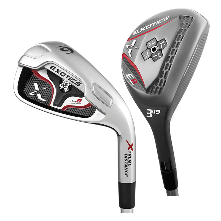 Tour Edge Exotics E8 Combo Iron Set. Tour Edge Exotics E8 Combo Iron Set Engineered to deliver exceptional power and control, E8 series irons are longest, most consistently accurate irons to carry the Exotics label. Our deepest undercut cavity design to date gives the E8 an incredibly ... - Tour Edge Exotics E8 Combo Iron Set. | | $799.95 More Information