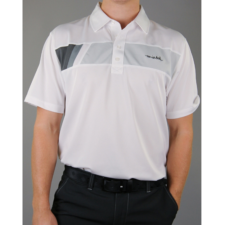 Travis Mathew Tower Golf Shirt - White. 2013 Travis Mathew Tower Golf Shirt FABRIC: Mesh Drytech DESCRIPTION: 4-button constructed placket with 2 hole icon buttons,silicone print across chest,script logo on left chest within print, MODEL: Height - 6'2" Weight - 180 lb Shown Wear... - Travis Mathew Tower Golf Shirt - White. | | $84.95 More Information